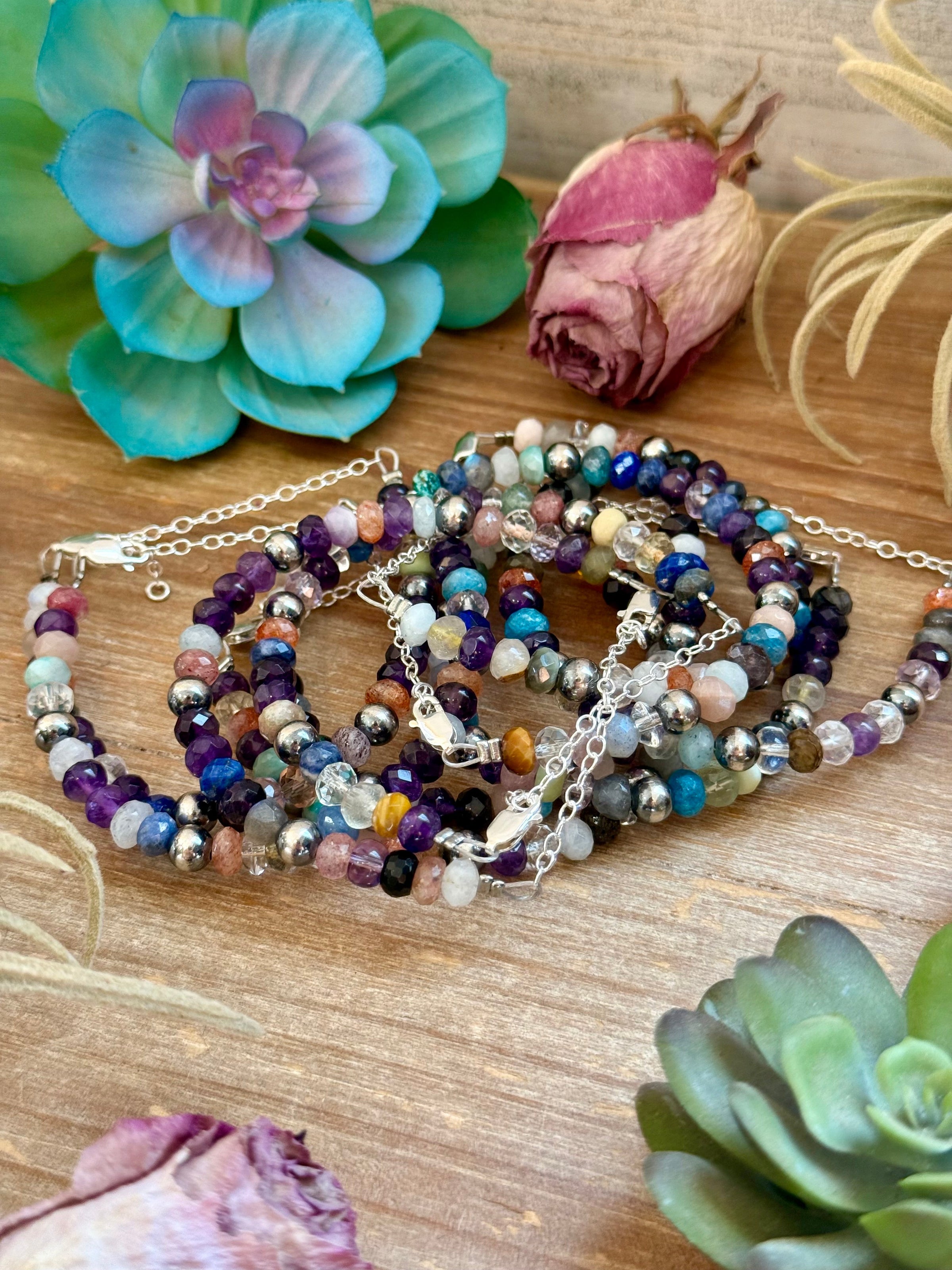 This beautiful 6.25 inch bracelet is handcrafted with mixed 6mm gemstone beads paired with 6mm sterling silver pearls. Finished with an extender for adjustable length and comfortable wear, this bracelet offers a colorful yet refined look that pairs easily with any outfit.