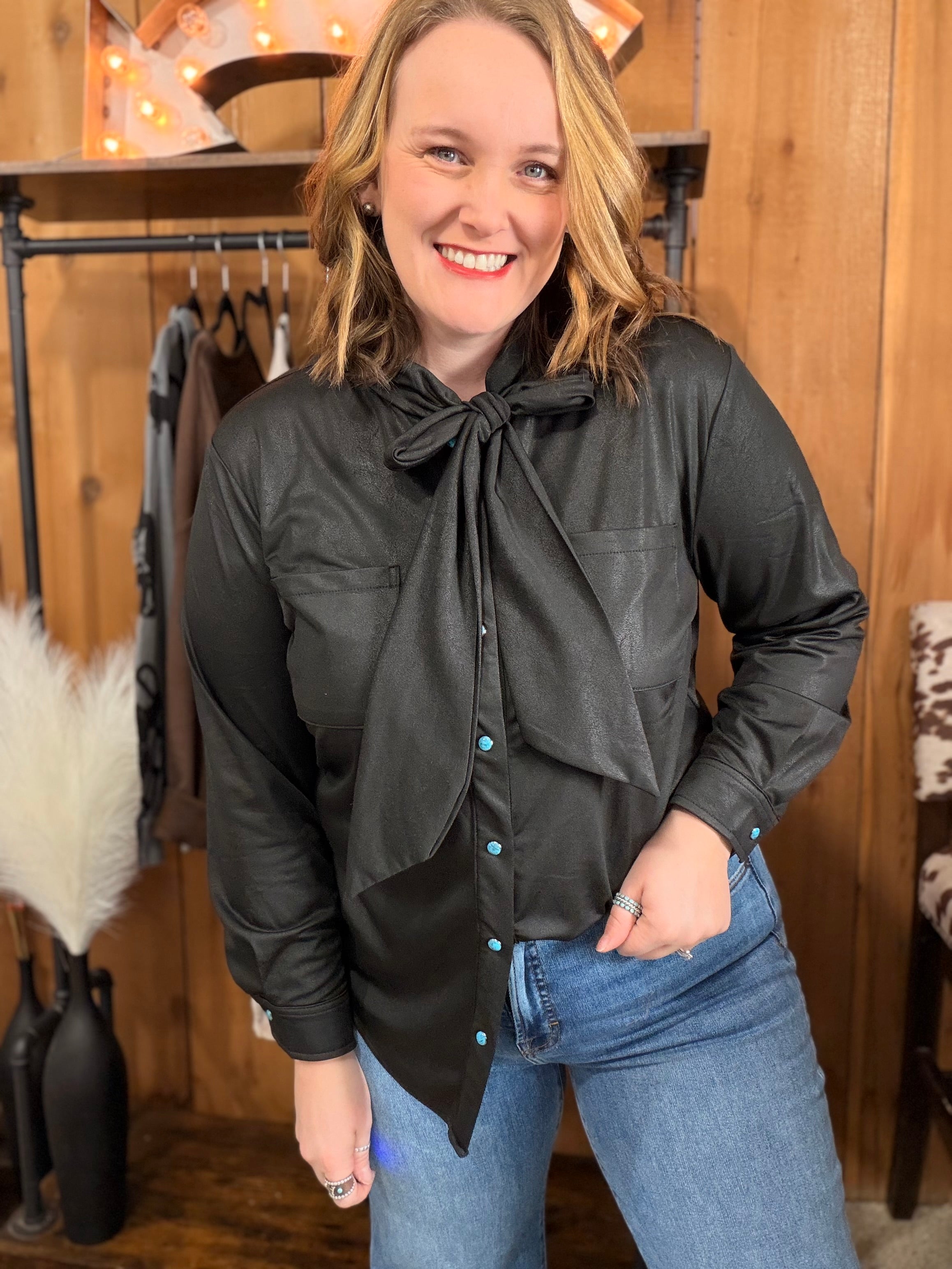 Midnight Leather Outlaw Bow Top