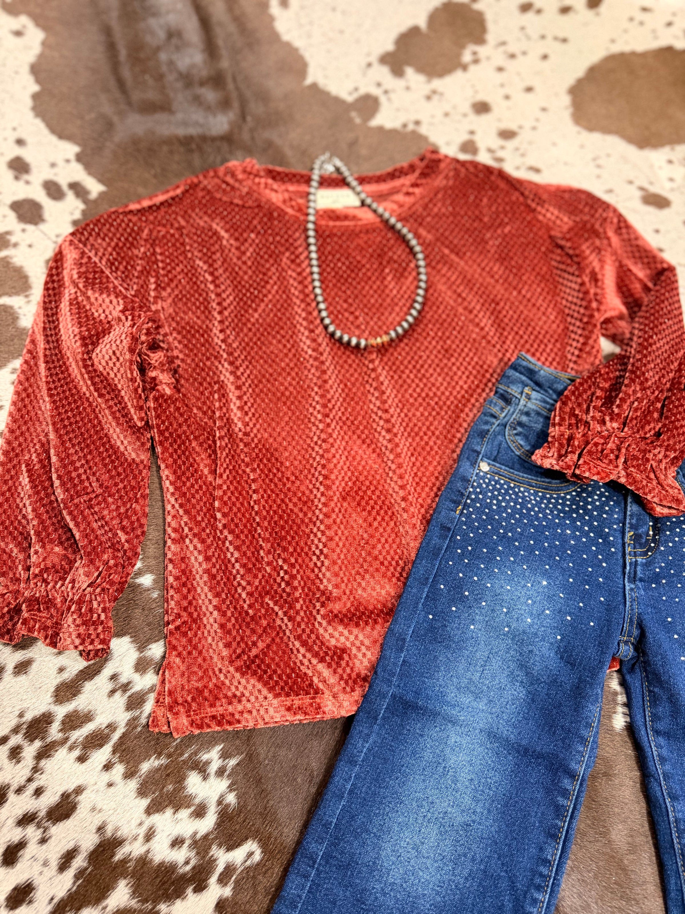 Girls Camel Velvet Top