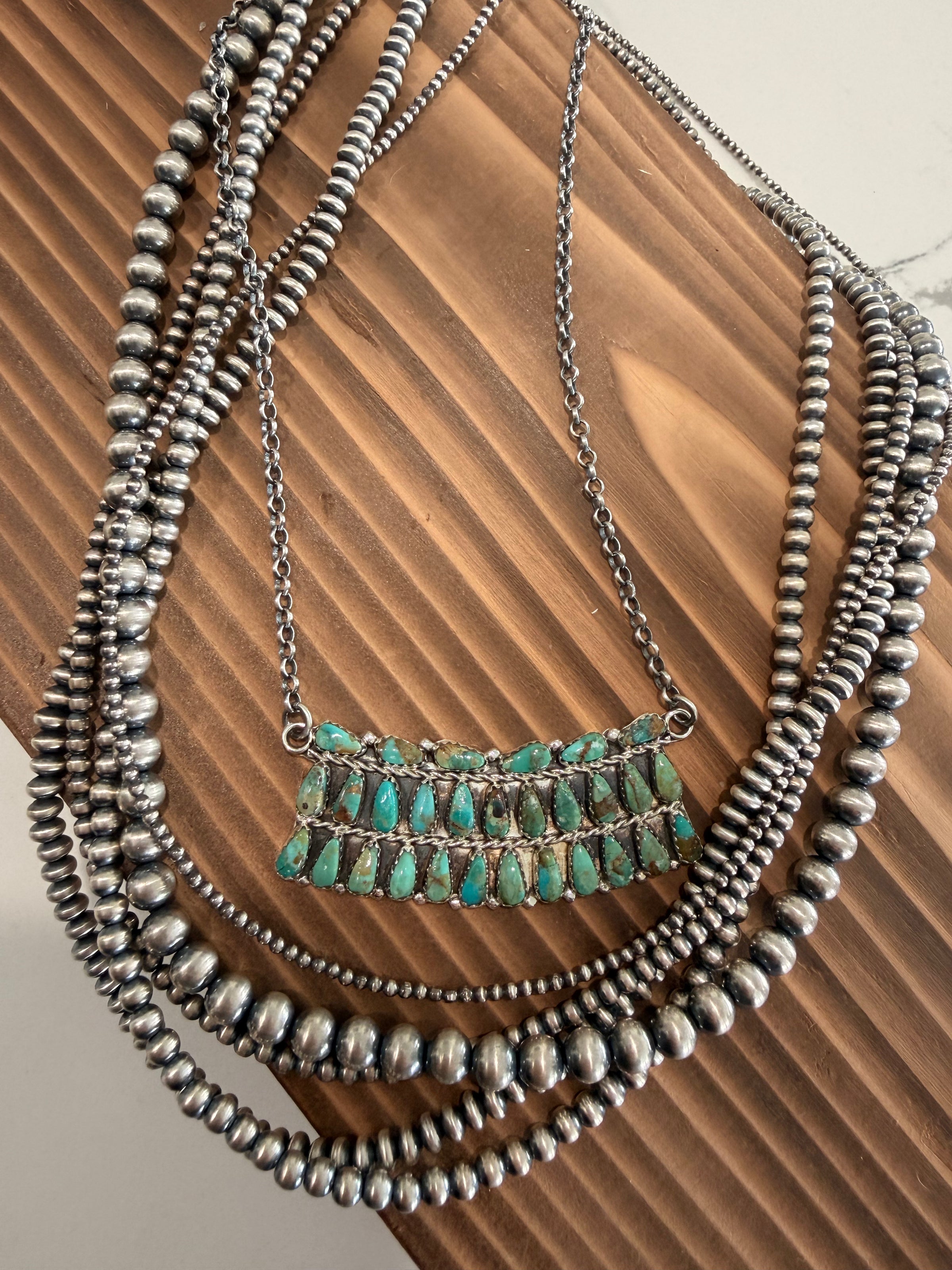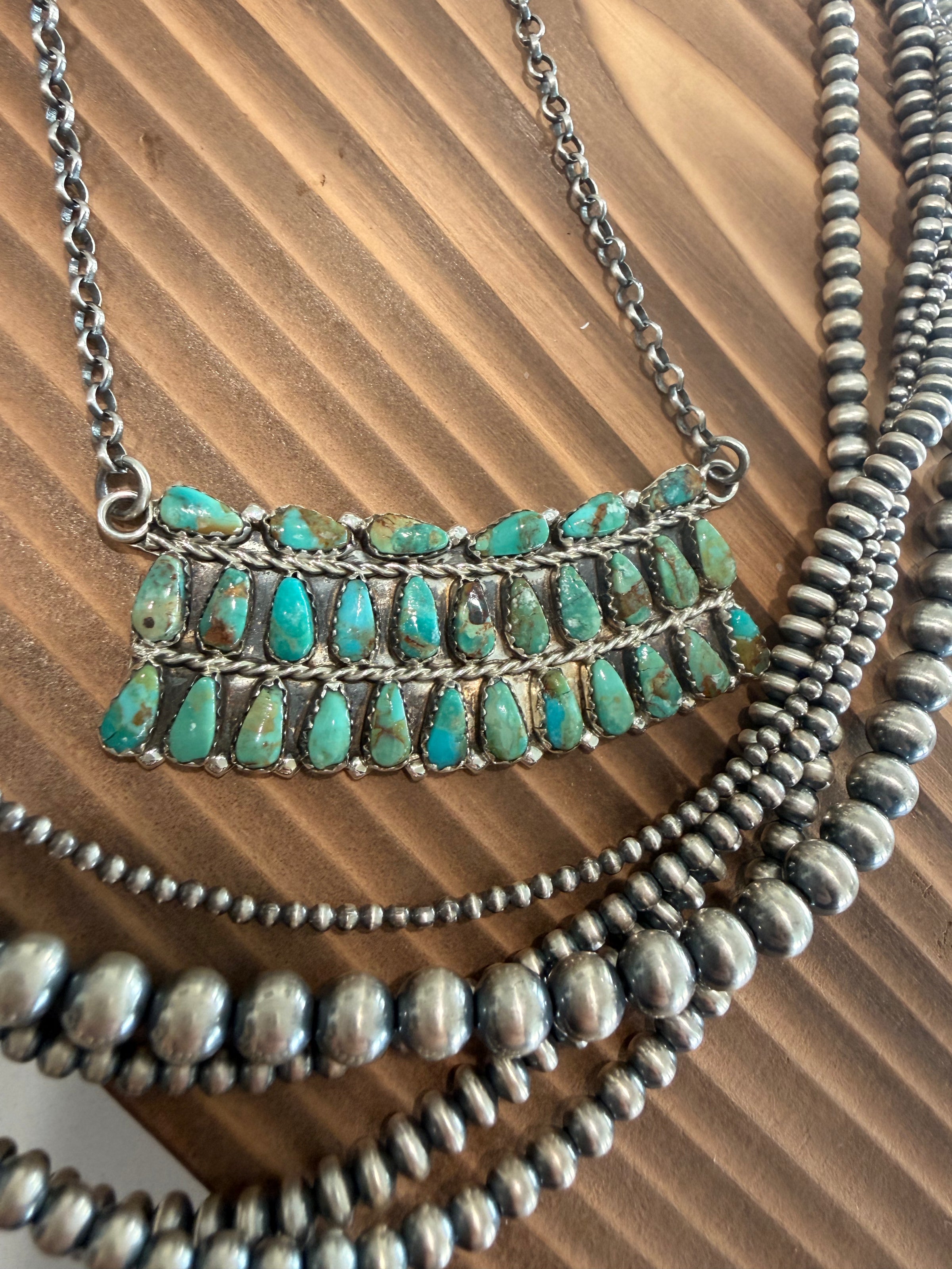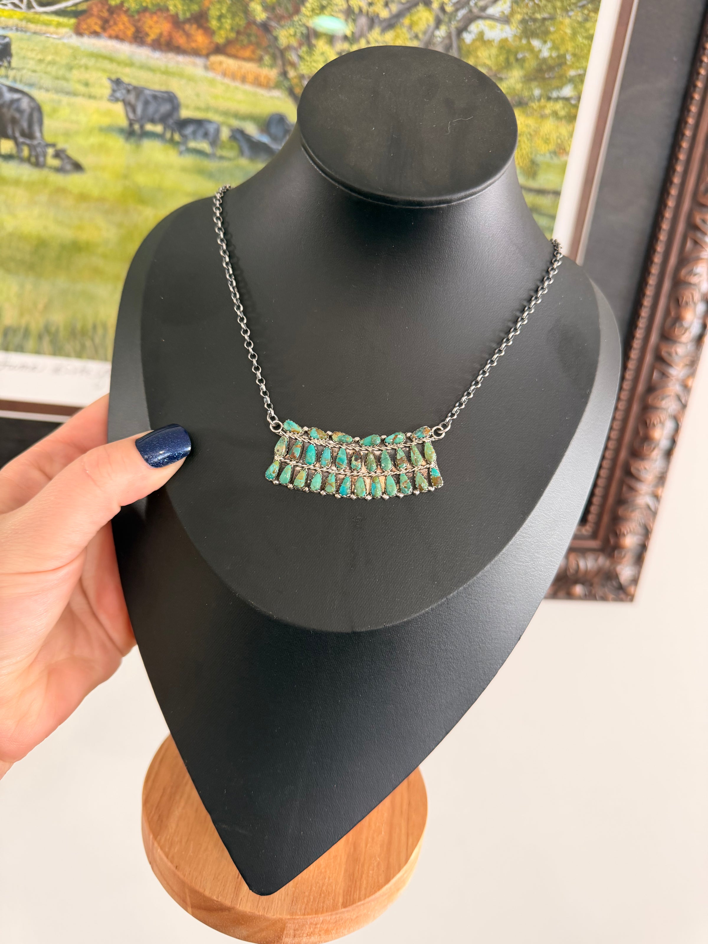 Kingman Turquoise Multi Stone Bar Necklace