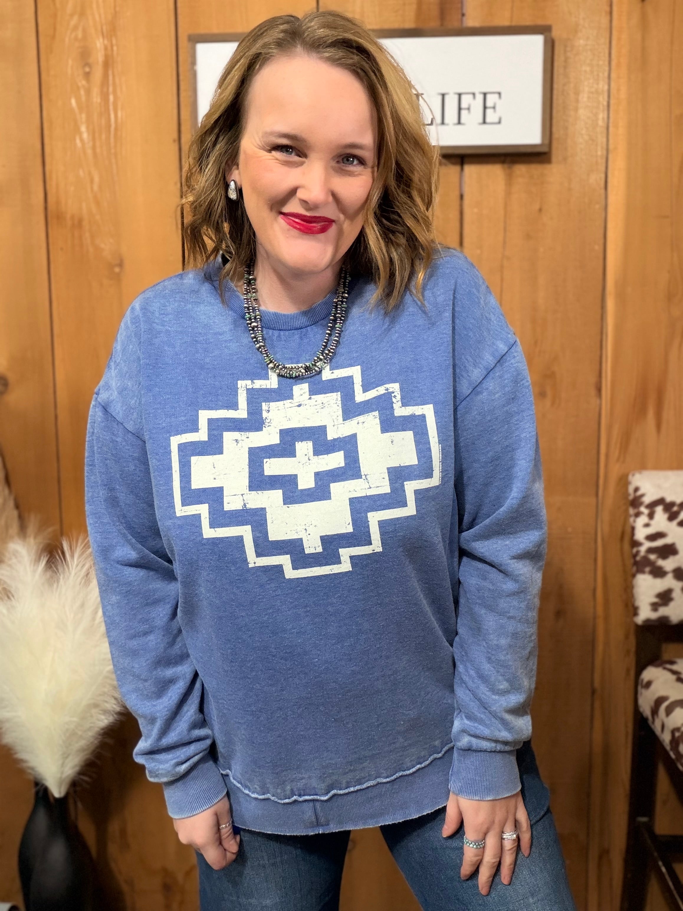 Mineral Blue Aztec Crewneck