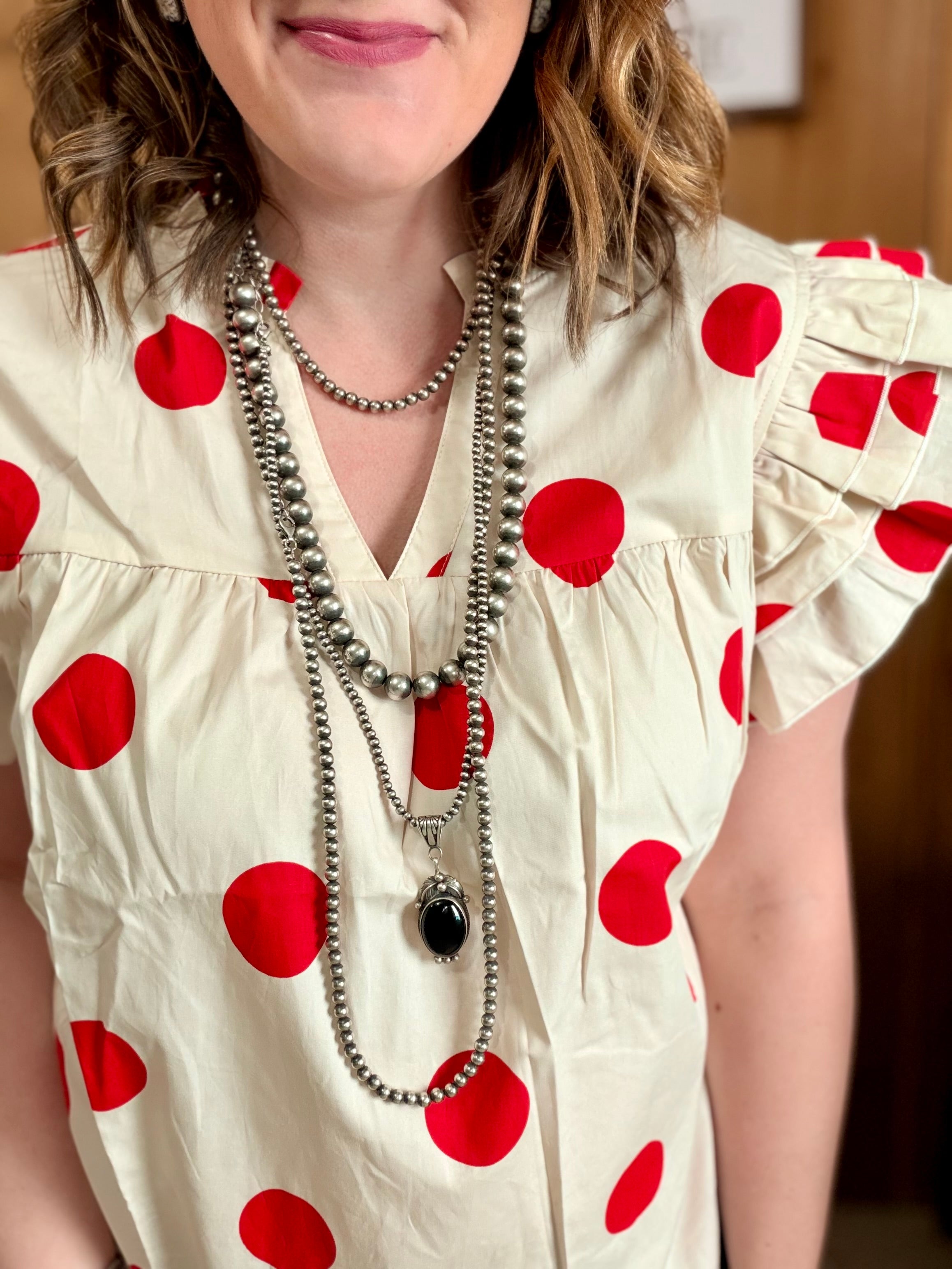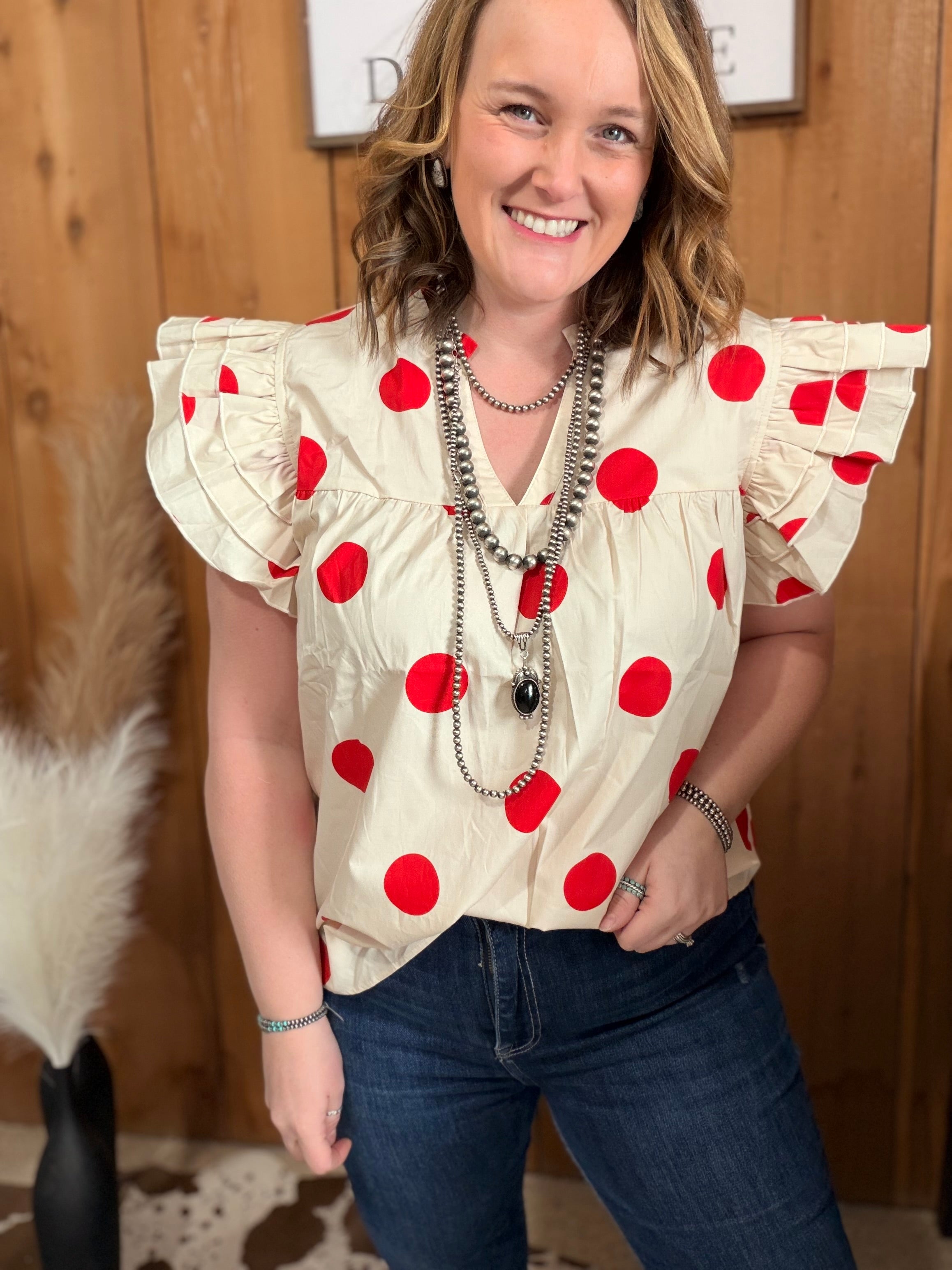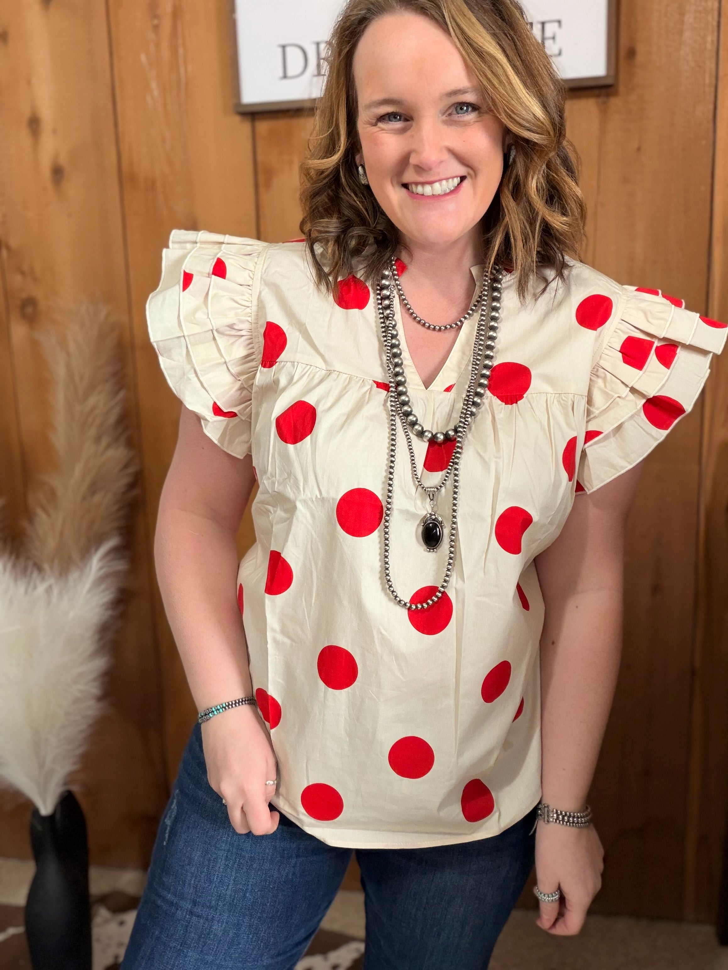 Big Dots Ruffle Sleeve Top *red