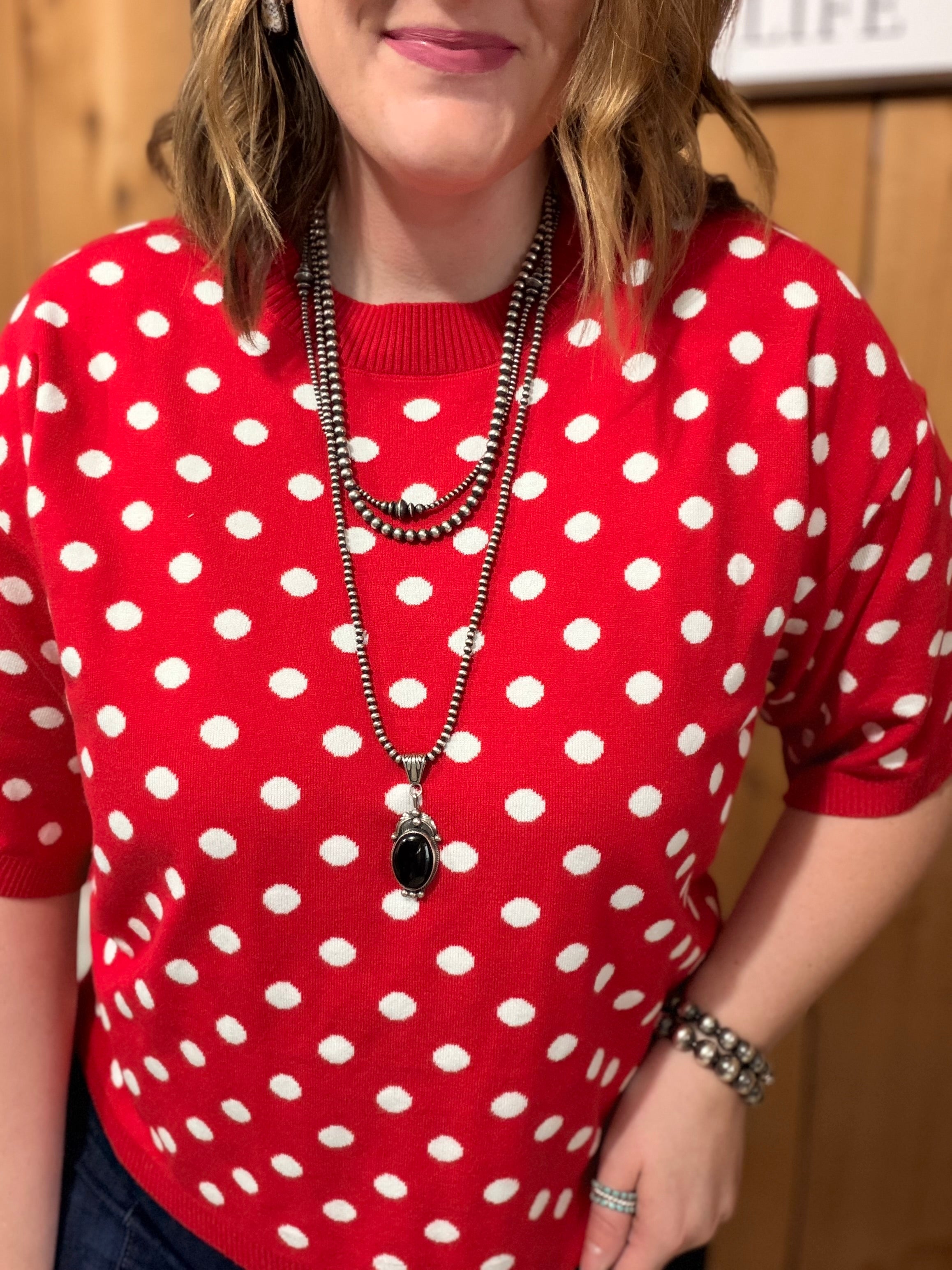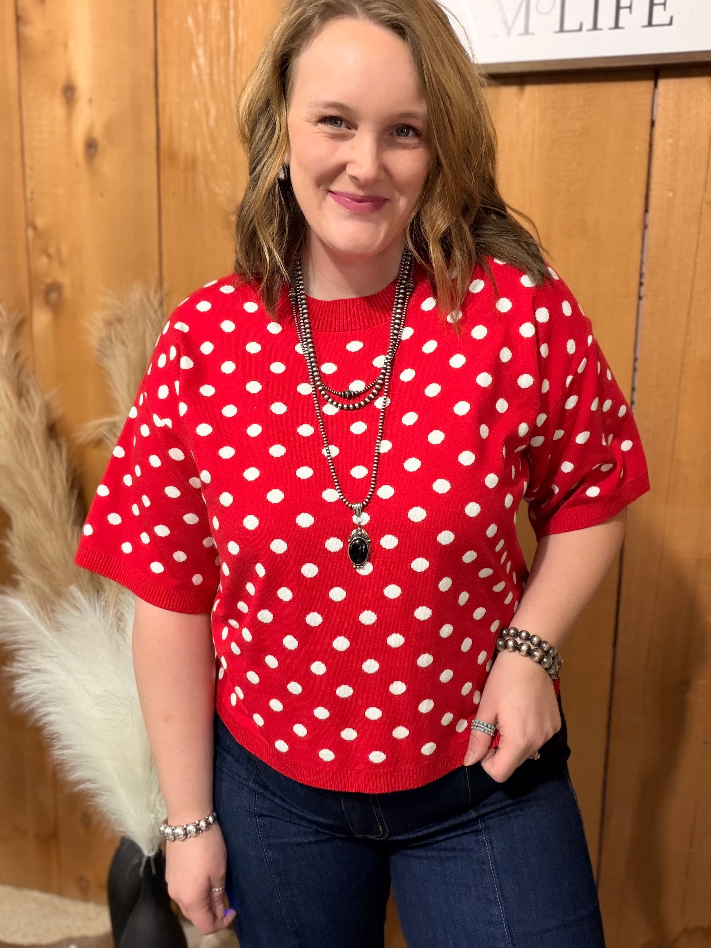 Polka Dot Lightweight Sweater Top *red