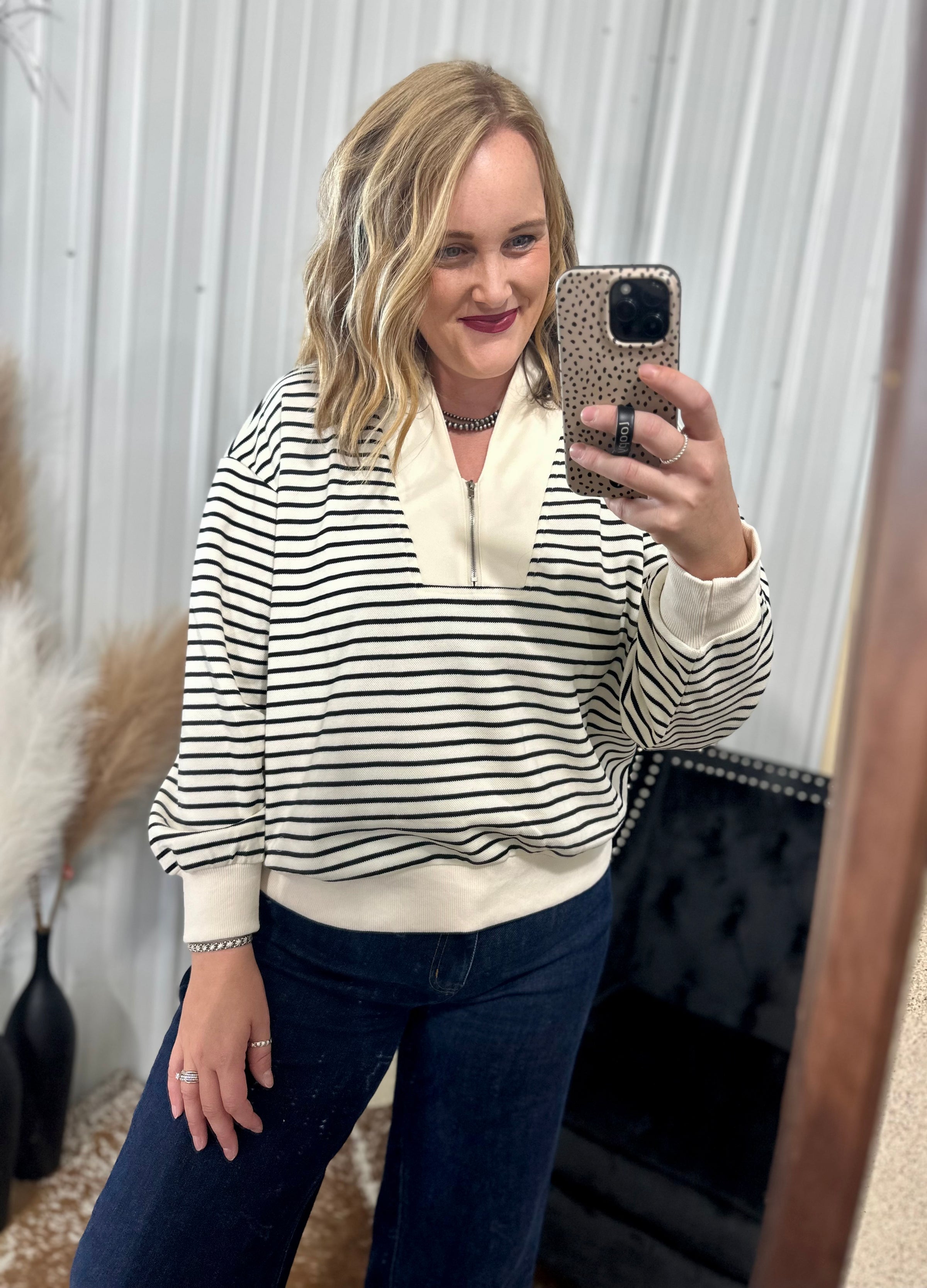 Black Striped Half Zip Sweatshirt