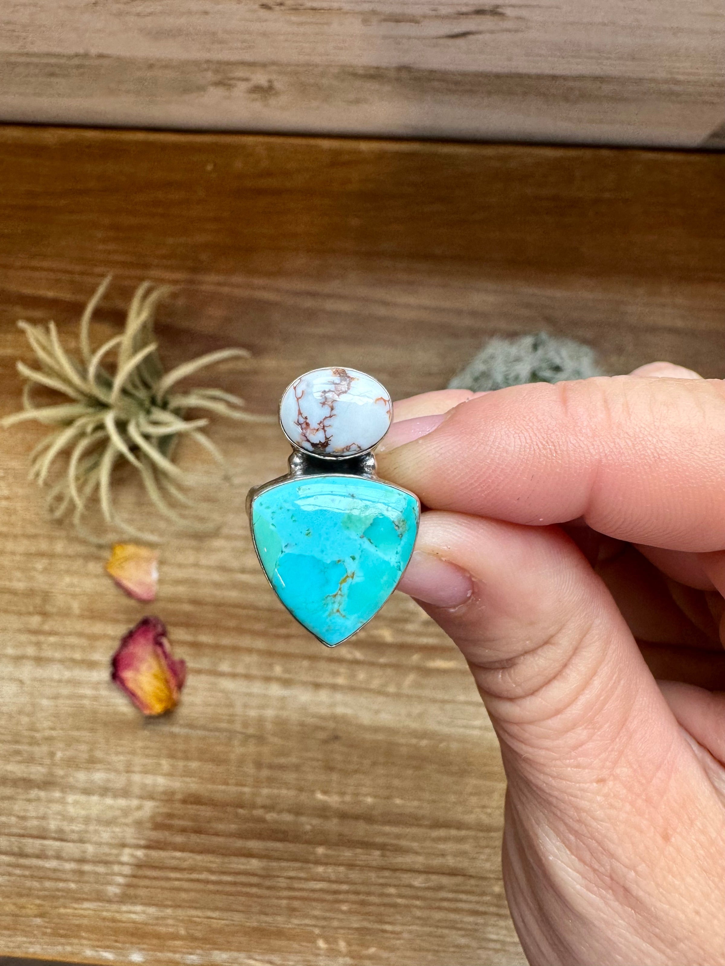 Multi Stone Ring - Size 5 - Kingman turquoise, Wild horse and sterling silver